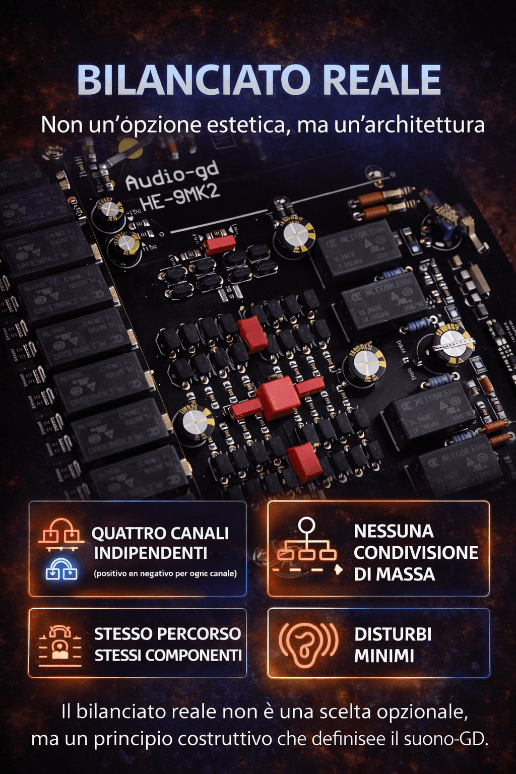 In Audio-GD il bilanciato non è un accessorio, ma una scelta strutturale che attraversa l’intero progetto.