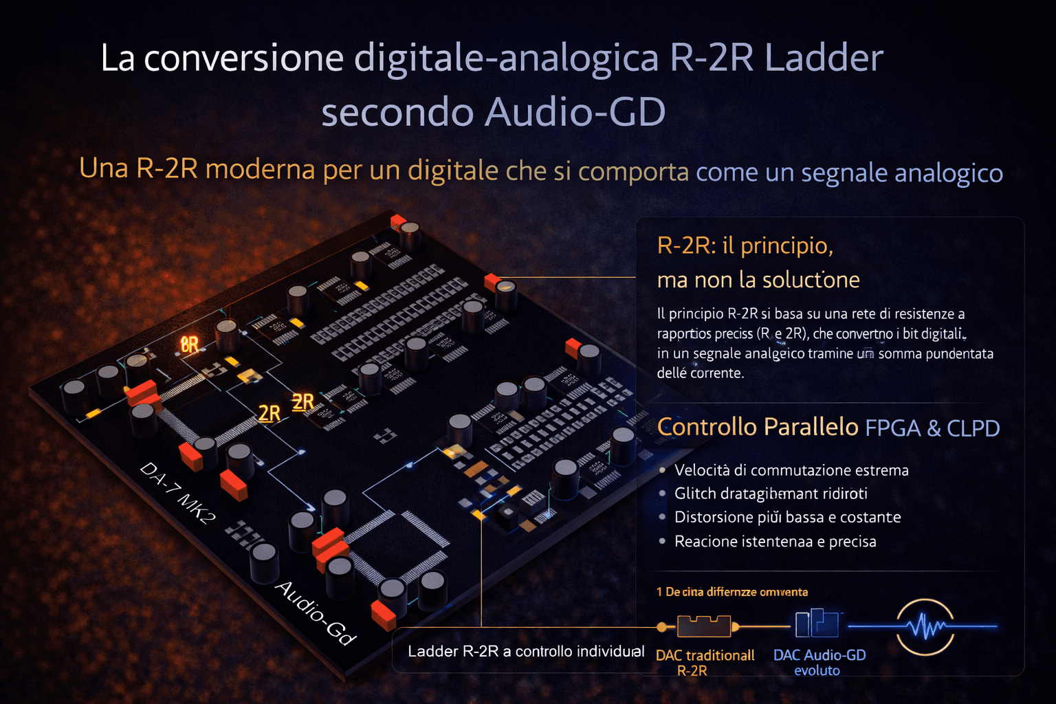 I DAC R-2R Audio-GD non cercano di imitare il passato, ma di risolvere tecnicamente i limiti storici di questa architettura, portandola a un livello moderno e maturo.